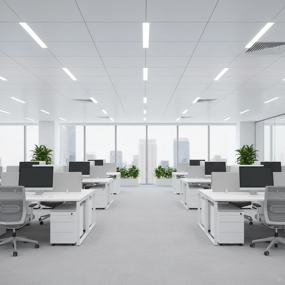 Linvera LED SF 1.0 ist eine moderne Anbauleuchte, die für Büroräume entwickelt wurde. Verschiedene Diffusorvarianten – opal, mikroprismatisch und eine Version mit Aluminiumraster – sorgen für komfortables, gleichmäßiges Licht und einen reduzierten UGR-Wert. Die Leistung von 10W bis 58W (1150–8450 lm) ermöglicht die Anpassung der Intensität an Größe und Zweck des Raumes.