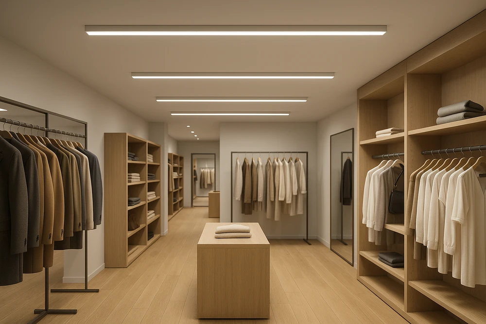Die Linvera LED SF 1.0 ist eine moderne Anbauleuchte, entwickelt für Geschäfte und Verkaufsräume. Sie bietet gleichmäßiges, angenehmes 4000K-Licht, das Farben von Produkten und die Raumästhetik betont. Dank hoher Lichtausbeute und minimalistischem Design eignet sie sich ideal für Verkaufs- und